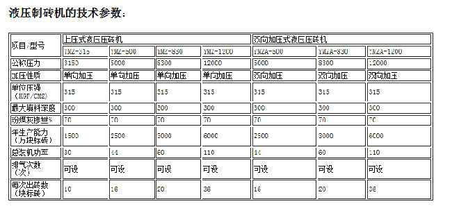 全自動液壓壓磚機(jī)的技術(shù)參數(shù):